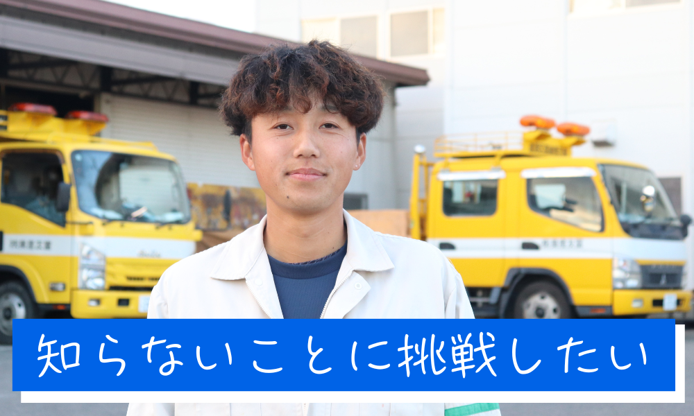 高校卒業後、普段は目にしない「区画線」の仕事に興味を持ち、2020年に入社。現場の下準備から作図、プライマー塗布、ライン引きまで工程を一つずつ習得し、いまは段取りを先読みしながら動けるように。完成した道路を見た瞬間の達成感をやりがいに、日々現場で腕を磨いています。