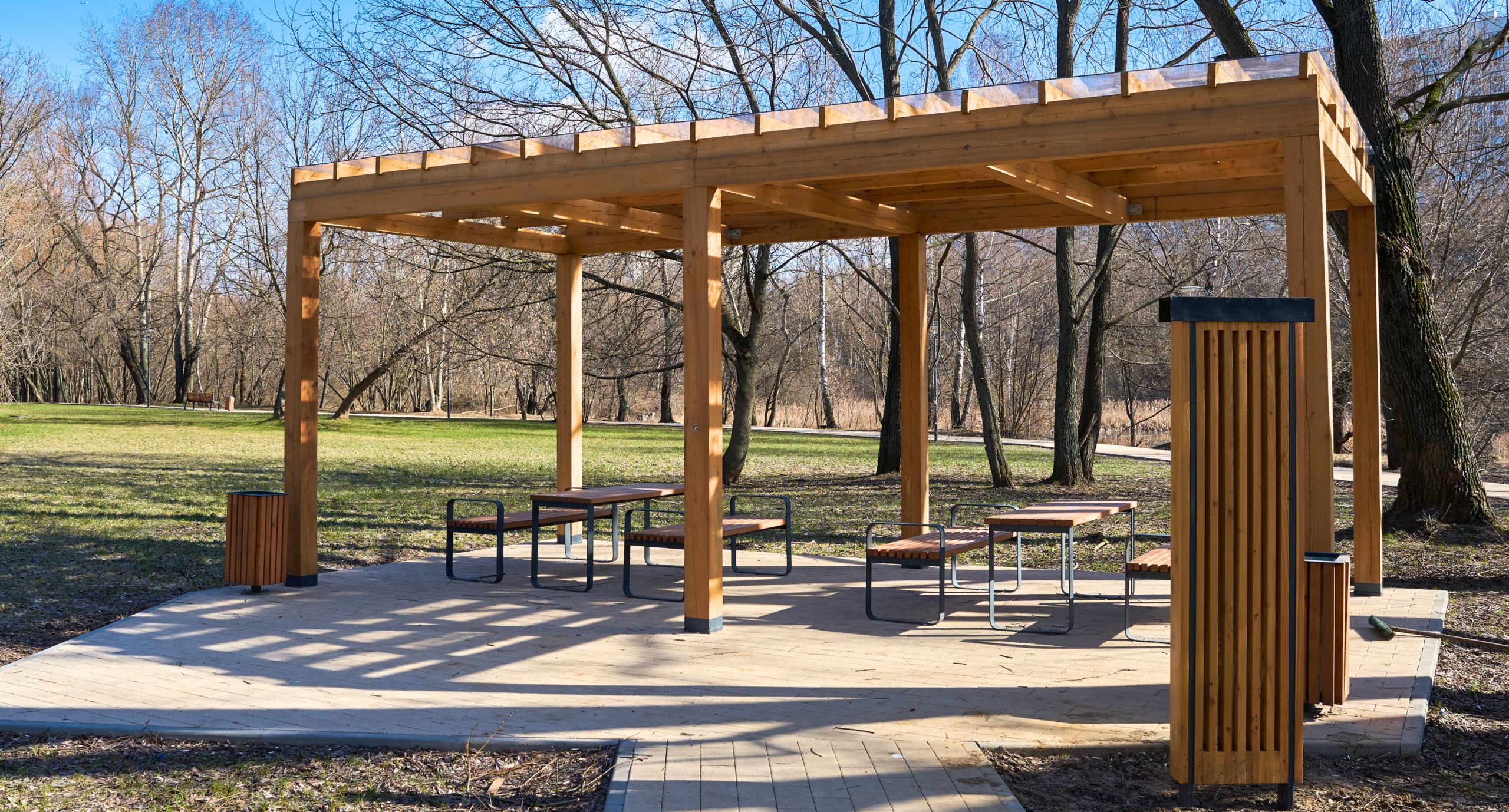 パーゴラは公園や広場に日陰と憩いの空間を作る屋外施設です。つる植物を絡ませたり、ベンチを組合せたりすることで、自然を感じながらゆったりと過ごせる心地よい休憩スペースを提供します。デザイン性にも優れ周囲の景観を美しく整える効果があり利用者に暗視と安らぎをもたらします。